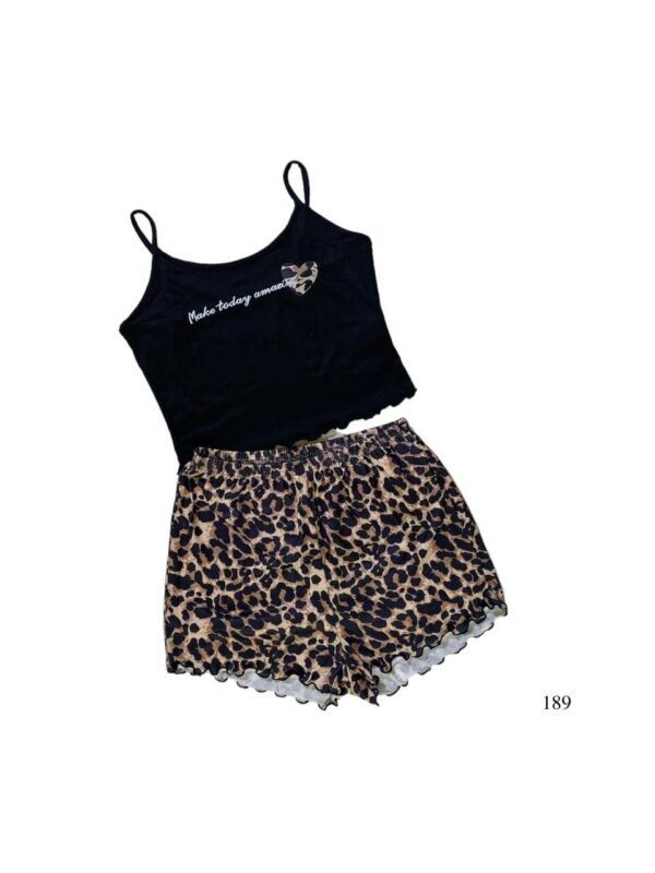 189 Pijama de blusa de tirantes color negra y short con estampado animal print "make today amazing" talla M cantidad