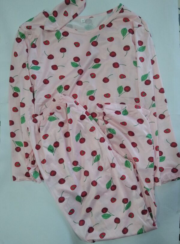 #71 Pijama de pantalón, manga larga y antifaz rosa con cerezas talla M cantidad